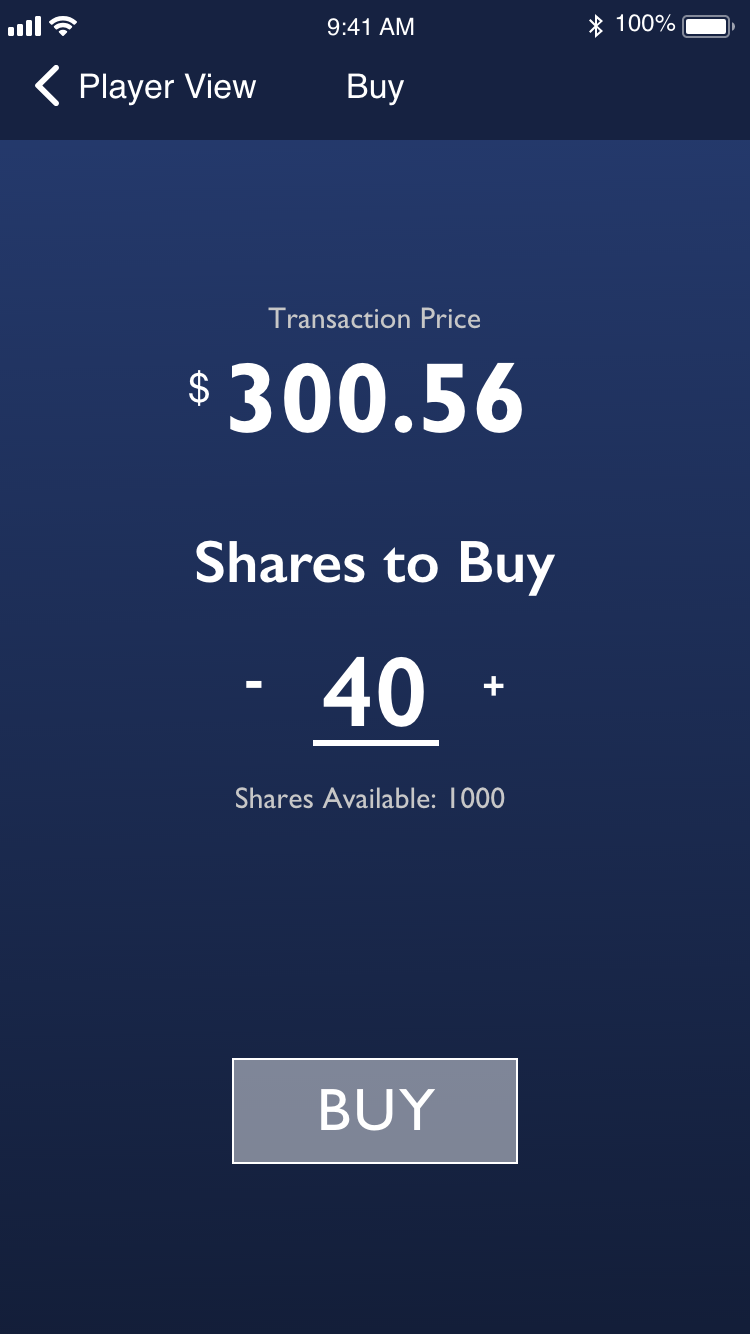 I was in charge of creating the UI and creating design guidelines for how the visuals of the app. I also created wireframes to map out the flow of the app and how every tab should transition to the next. I was also involved on the coding front by coding the Buy and Sell functionality as well as the Detailed Player View, which showed the player’s seasonal stats and performance on the latest 5 games.